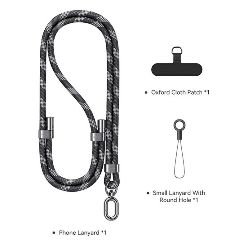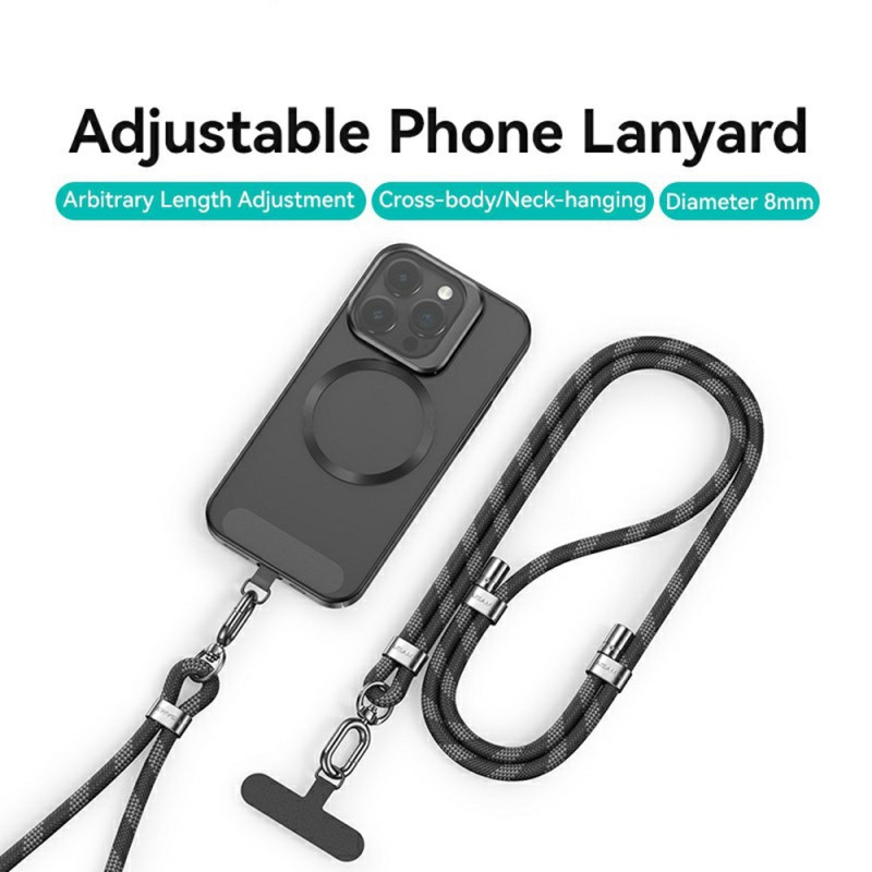 Descubra a nossa correia ajustável para telemóvel a tiracolo. Fabricado em poliéster durável com uma fivela em liga de zinco, este cordão de 160 cm oferece versatilidade e estilo.