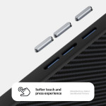 - Textura elegante em fibra de carbono para uma aderência superior e um aspeto moderno e topo de gama