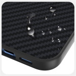 - O design premium combina durabilidade com um aspeto luxuoso graças a um sofisticado padrão impresso em fibra de carbono 6D