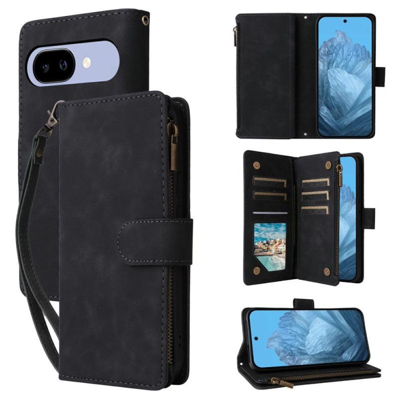 Étui portefeuille multifonction pour Google Pixel 10a avec fermeture éclair, multiples emplacements pour cartes et dragonne. Combine style et praticité avec son support intégré et sa fermeture magnétique sécurisée.