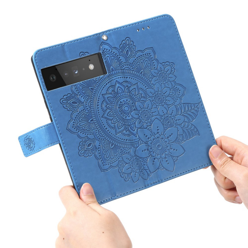 Une magnifique housse pour Google Pixel 6 Pro au mandala design de fleurs qui fait aussi portefeuille et support.
