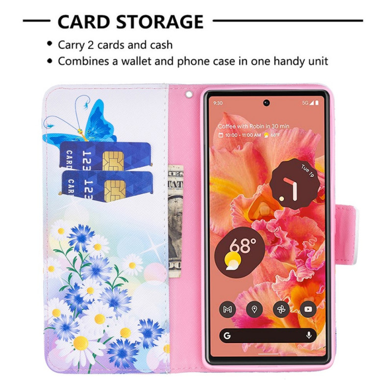 O seu Google Pixel 6 tem um óptimo aspecto quando protegido por esta capa única decorada com borboletas e flores pintadas.