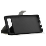 Tem suportes para cartões e um bolso para dinheiro ou pequenos documentos.