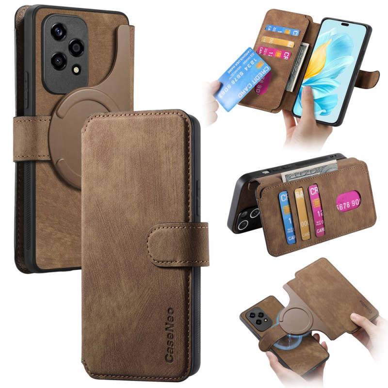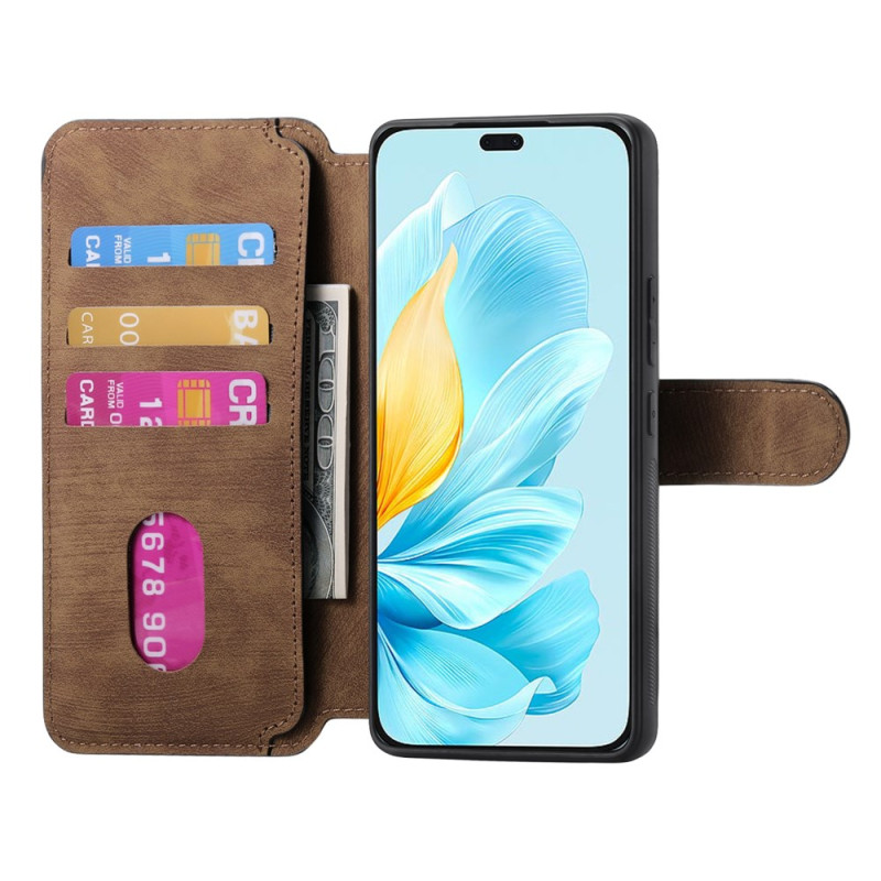 Uma capa retro em pele PU texturada duradoura, com um fecho magnético para guardar os seus cartões e dinheiro.