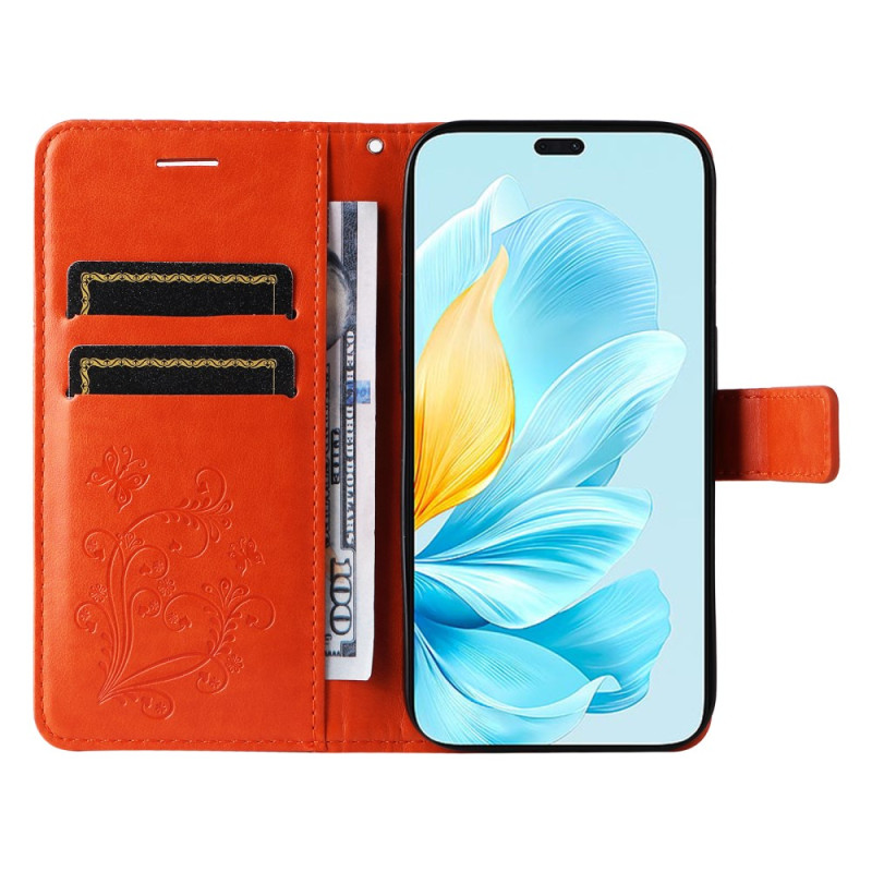 com aba apresenta uma borboleta impressa e motivos florais, mostrando uma elegância e um estilo inigualáveis.