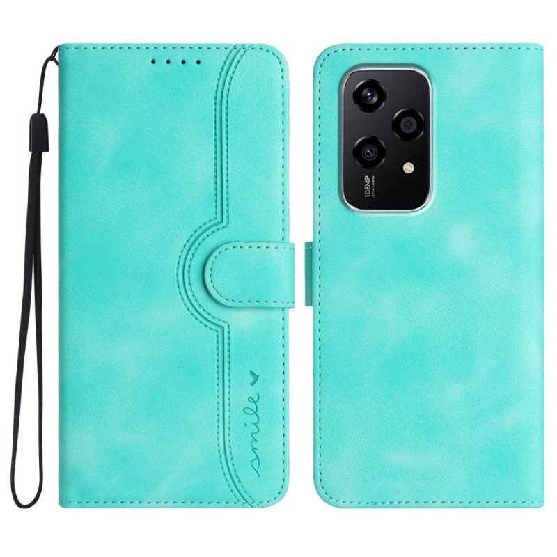 Esta capa para telemóvel, com um sorriso estampado e um suporte para carteira, combina funcionalidade e estilo.