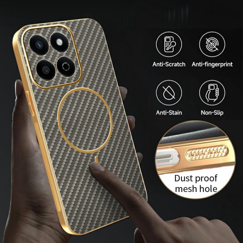 Proteção elegante e robusta para o seu Honor 200 Smart 5G / X7c 4G. Esta capa combina um design moderno com uma textura de fibra de carbono e um acabamento eletrolítico de primeira qualidade. Oferece uma proteção óptima contra choques e riscos.