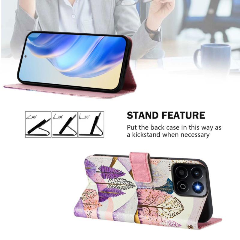 Proteja o seu Honor X7c 5G / 4G / 200 Smart 5G com estilo com esta elegante capa para carteira com motivos em forma de árvore. Com um suporte multi-ângulo ajustável, 3 ranhuras para cartões e uma correia de pulso segura, combina praticidade com proteção reforçada.