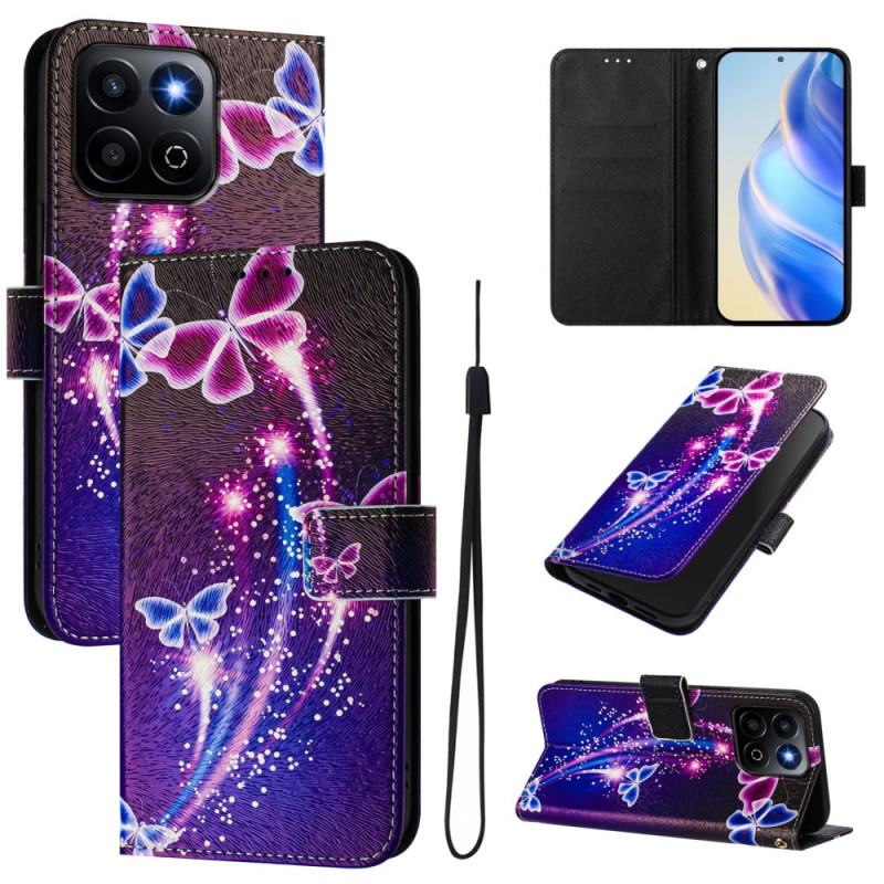 Transforme o seu Honor X7c 5G / 4G / 200 Smart 5G num acessório de moda com esta elegante capa para carteira com um bonito design de borboleta com fogo de artifício. Desfrute de um suporte multi-ângulo ajustável, uma correia de pulso segura e várias ranhuras para cartões.