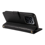 Étui portefeuille élégant avec motif losange pour Honor X7c 4G / 200 Smart 5G. Conception multifonctionnelle avec 3 emplacements pour cartes, poche pour billets et fonction support. Livré avec bandoulière et dragonne pour un transport pratique.
