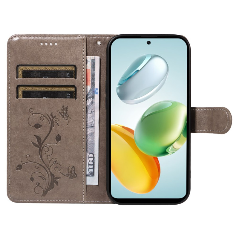 Descubra esta elegante capa para carteira com um bonito motivo floral e borboleta. Com duas ranhuras para cartões, um compartimento lateral e uma prática função de suporte, combina estilo e funcionalidade para proteger o seu telemóvel todos os dias.