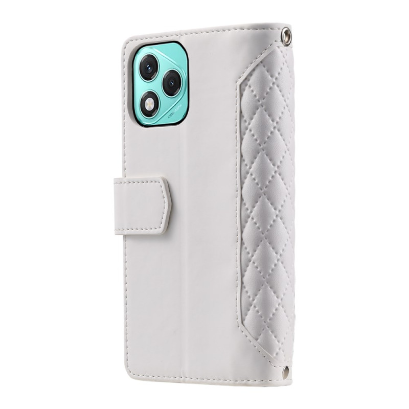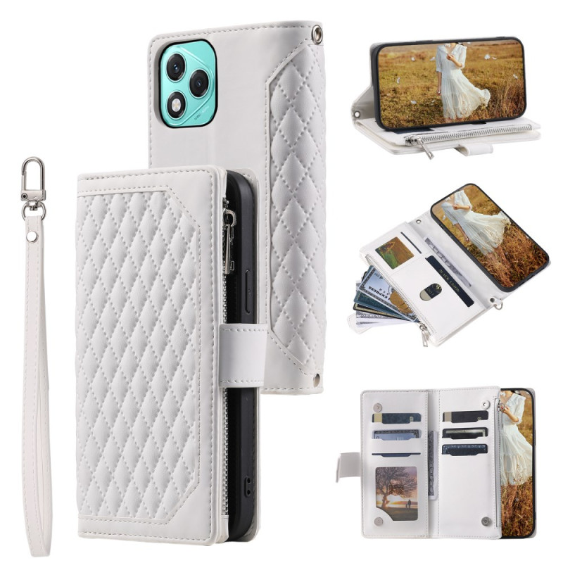 Capa elegante em pele PU com design de diamante cosido, que oferece proteção completa e funcionalidades práticas. Inclui ranhuras para cartões, visualização em modo mãos-livres e fecho magnético para máxima segurança.