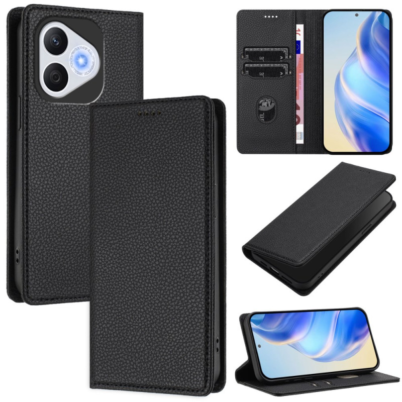 tipo carteira para o Honor 400 Lite. Fabricada em pele PU com textura de lichia e TPU, oferece proteção RFID, arrumação prática para cartões e dinheiro e uma função de suporte ajustável.