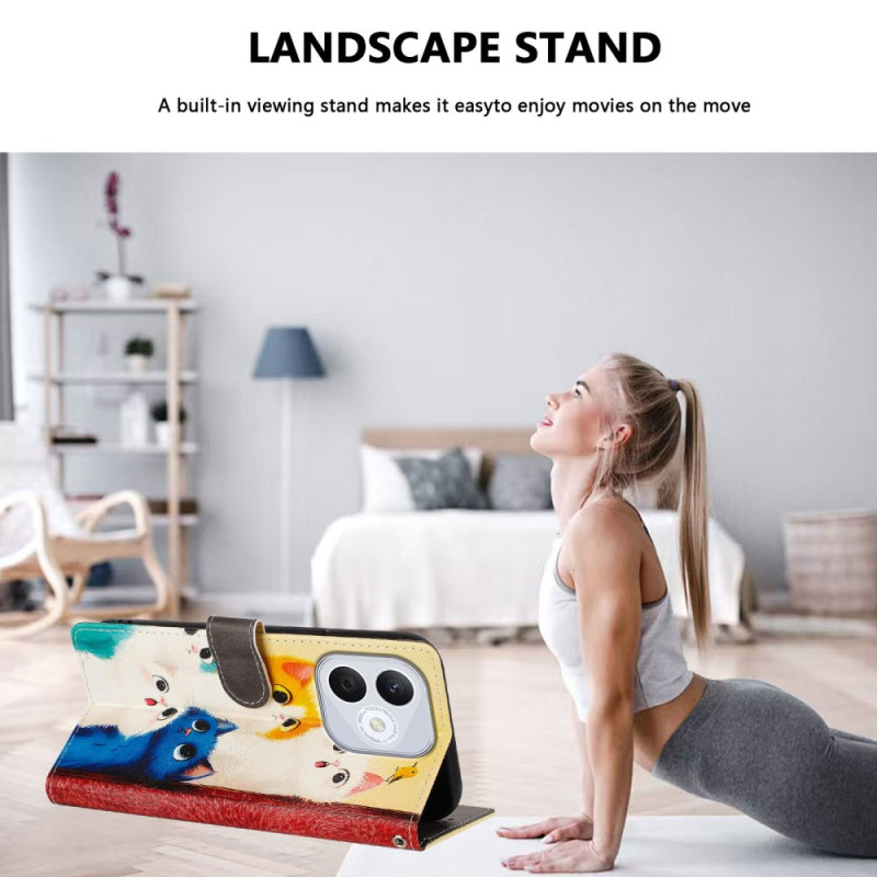 Proteja o seu telemóvel com estilo com esta elegante capa de carteira adornada com gatos coloridos. Com compartimentos para cartões, um suporte ajustável e uma prática correia de pulso, é a combinação perfeita de proteção e praticidade no dia a dia.