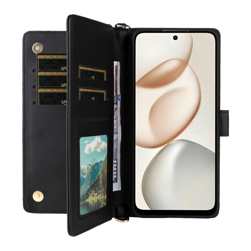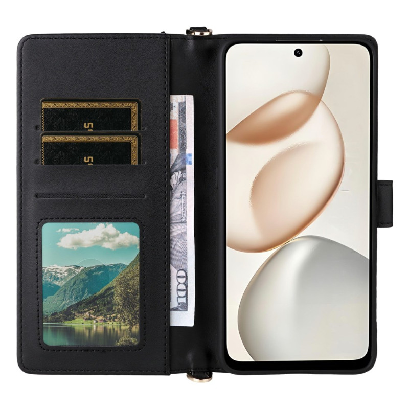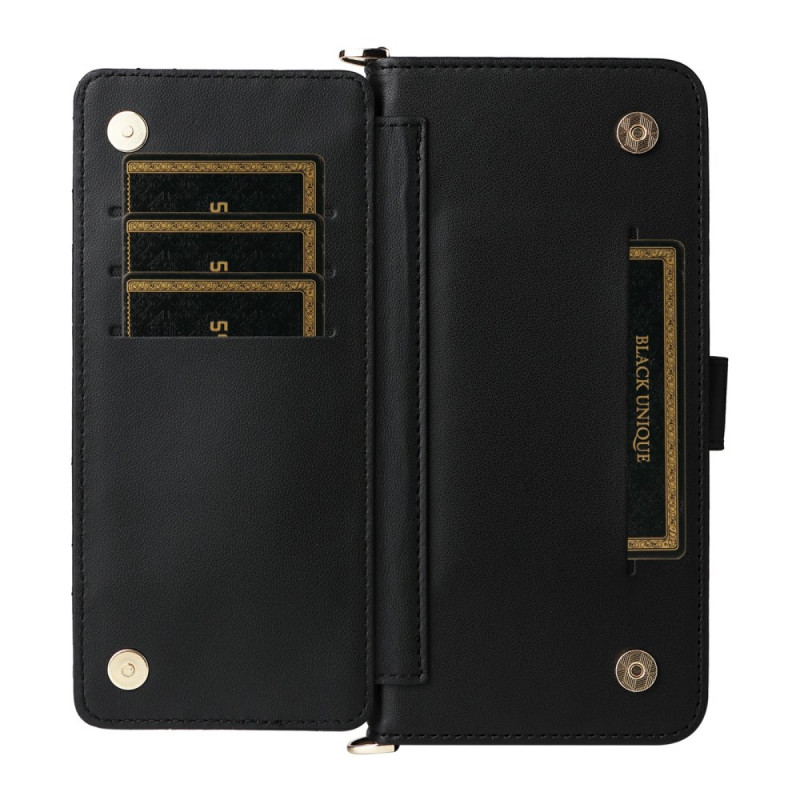 - Fecho magnético seguro: Equipado com um fecho magnético robusto para manter o telemóvel, os cartões e o dinheiro no lugar, garantindo ao mesmo tempo um acesso fácil