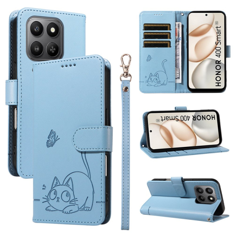 Descubra a nossa capa multifunções para carteira para o Honor 400 Smart 4G. Com três ranhuras para cartões, um bolso para dinheiro e um fecho magnético seguro, esta capa combina praticidade e proteção. O seu design elegante com motivo de gato da sorte e a correia de pulso amovível fazem dela o acessório perfeito para o seu smartphone.