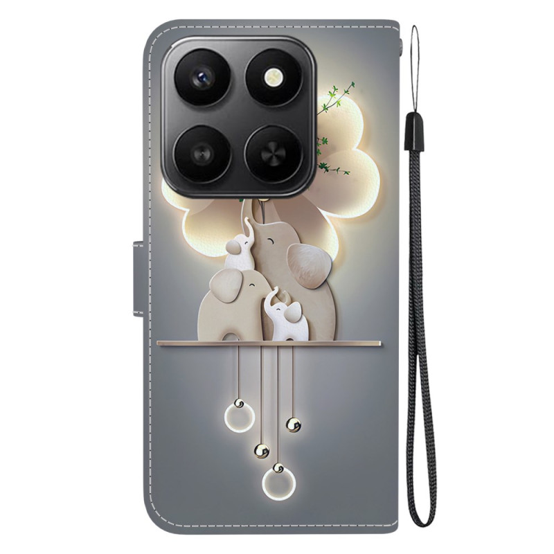 Capa elegante para carteira com motivo de três elefantes impressos. Função de suporte integrada para visualização em mãos-livres, fecho magnético seguro, 2 ranhuras para cartões e compartimento lateral. Proteção reforçada contra quedas.