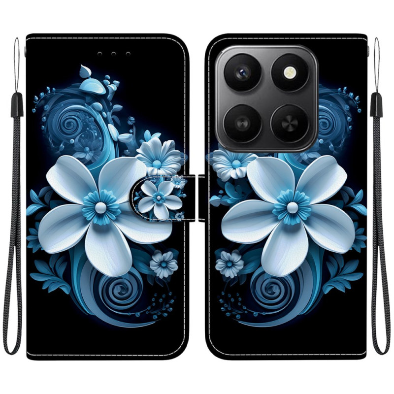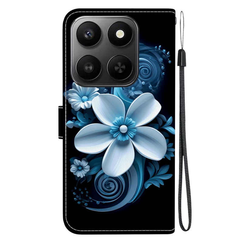 Capa elegante com motivo de orquídea preta para o seu Honor 400 Smart 5G / 4G. Proteção total com função de suporte, suporte para cartões e fecho magnético seguro. Inclui um cordão amovível para um transporte prático no dia a dia.