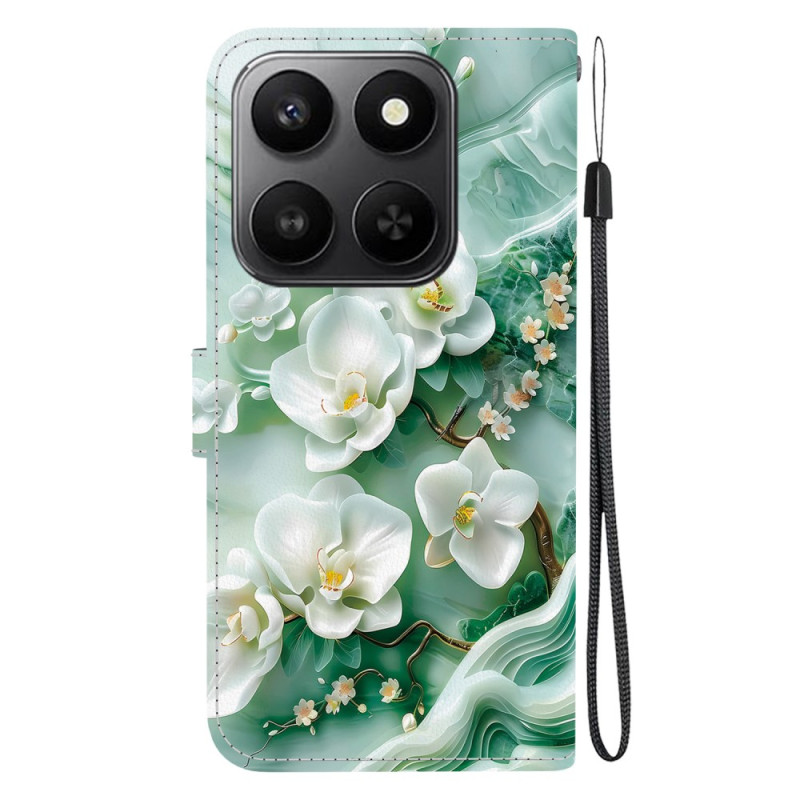 Descubra este elegante capa de carteira com aba e um bonito motivo de flores de jade. Com ranhuras para cartões, uma prática função de suporte e um fecho magnético seguro, combina estilo com uma proteção óptima para o seu Honor 400 Smart 5G / 4G.