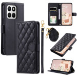 Capa elegante com padrão de diamante acolchoado para o Honor 400 Smart 5G / 4G. Função de suporte integrada, fecho magnético seguro, bolso para moedas e 3 ranhuras para cartões. Fornecida com uma alça de ombro de 145 cm e uma alça de mão para um transporte cómodo.