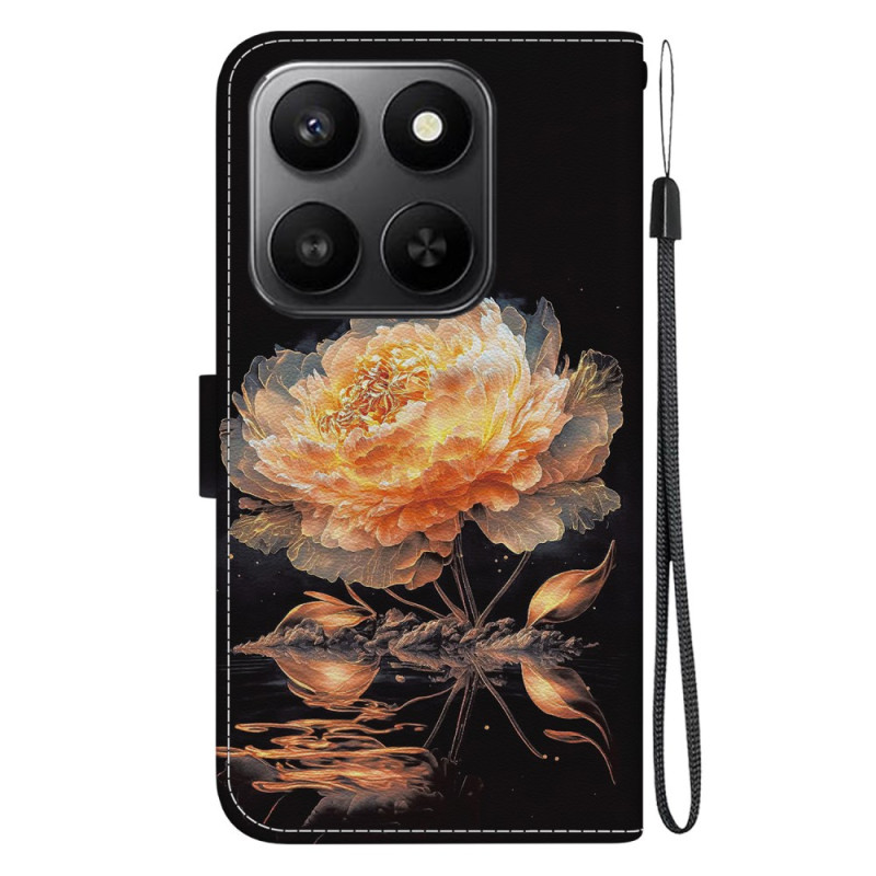 Proteja o seu Honor 400 Smart 5G / 4G com estilo com este capa de carteira com um motivo de peónia dourada. Com um suporte integrado para ver com as mãos livres, compartimentos para cartões e dinheiro e uma prática correia de mão. Design requintado e proteção ideal combinados.