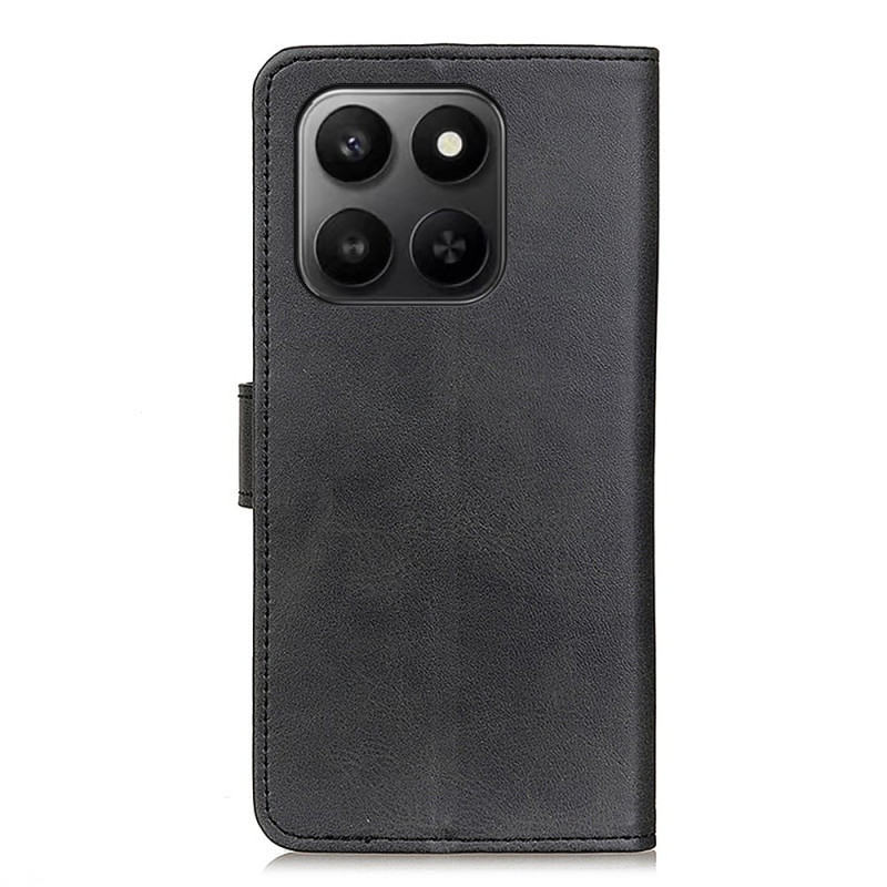 Capa elegante para carteira com textura em pele sintética e revestimento em TPU reforçado. Inclui 3 ranhuras para cartões, um compartimento lateral para dinheiro, um fecho magnético seguro de dupla face e uma função de suporte integrada para visualização em mãos-livres.