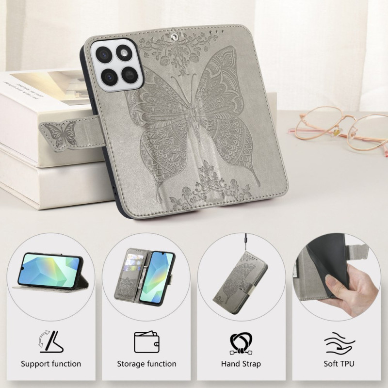 Proteja o seu Honor 400 Smart 5G / 4G / X7d 5G / 4G com estilo com este capa em pele PU com um bonito motivo de borboleta. Com ranhuras para cartões, um bolso para dinheiro, uma prática correia de pulso e um suporte ajustável para um ótimo conforto na utilização diária.