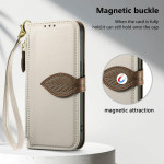 Descubra este elegante capa em pele PU com um fecho magnético decorativo em forma de folha. Com 3 ranhuras para cartões, 1 bolso para dinheiro e um bolso exterior com fecho de correr, combina estilo e funcionalidade. A alça de mão destacável e o suporte integrado proporcionam um conforto ótimo para a utilização diária.