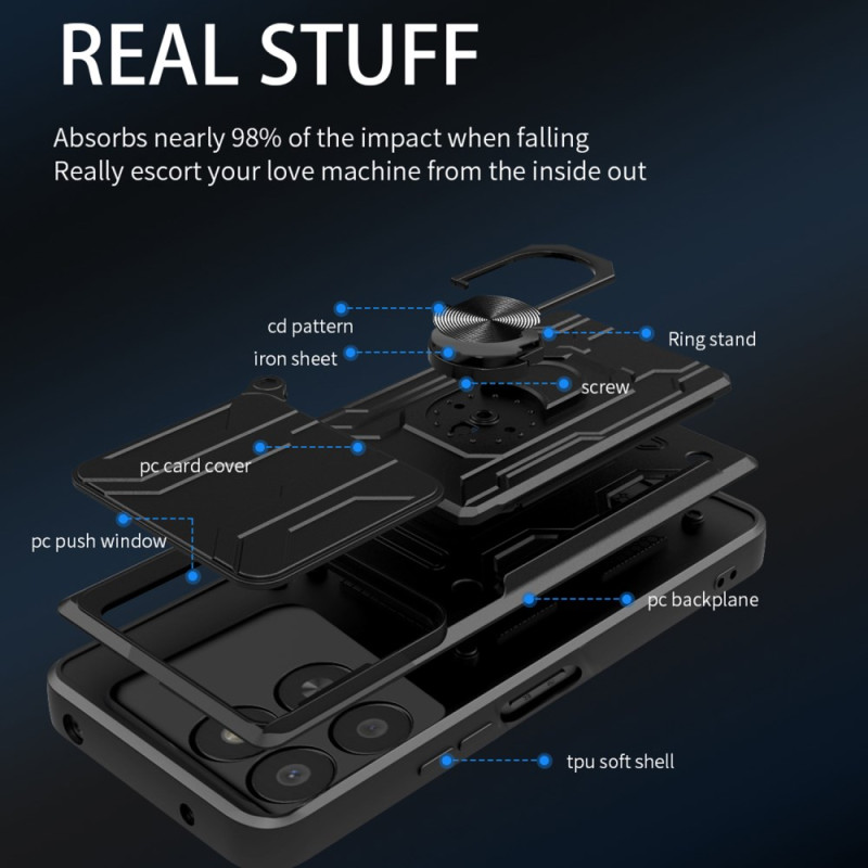 Proteja o seu Honor com estilo com esta capa multifunções. Inclui um suporte metálico retrátil, um suporte magnético para automóvel, um suporte deslizante para cartões e uma inovadora tampa para a câmara para uma proteção óptima.