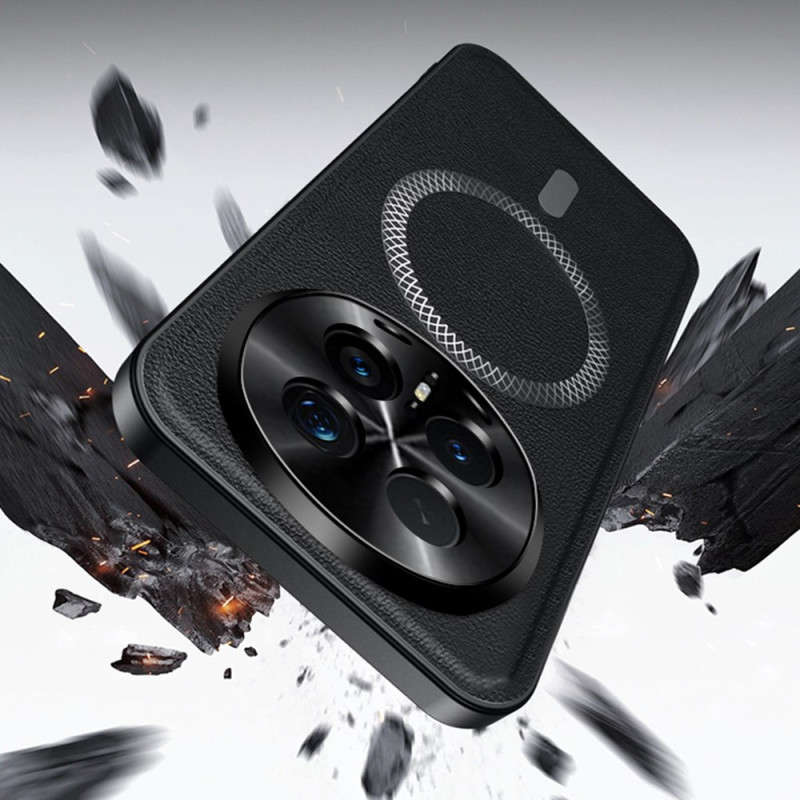 Capa Premium compatível com MagSafe para o Honor Magic 8 Pro 5G. Construção em PU, TPU e PC para uma proteção óptima, design de airbag de absorção de choques, estrutura metálica para lentes elevadas e recortes precisos. Botões independentes e extremidades antiderrapantes.