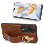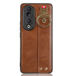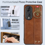 com uma correia que funciona como suporte, anel e cordão para o Honor 90.