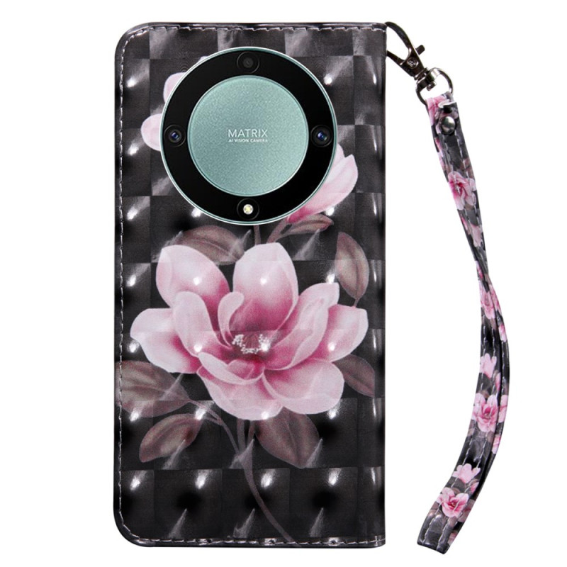 Esta elegante capa de telemóvel para o Honor Magic 5 Lite 5G / X9a apresenta um padrão floral rosa 3D e uma bracelete.