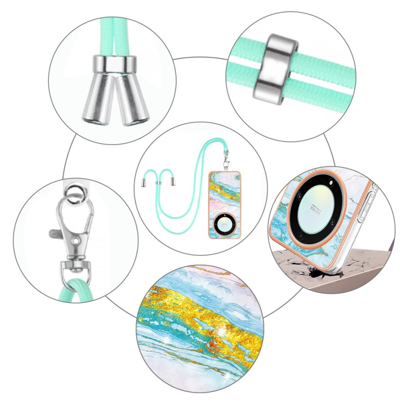 Descubra a capa para telemóvel com cordão, estilo mármore, concebida para o Honor Magic 5 Lite 5G / X9a.