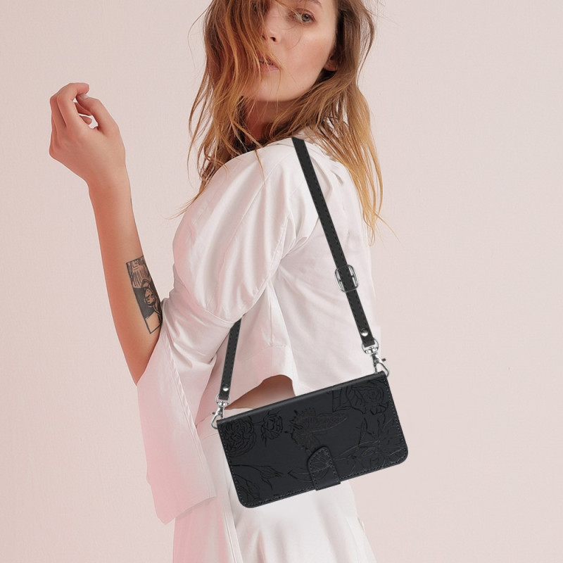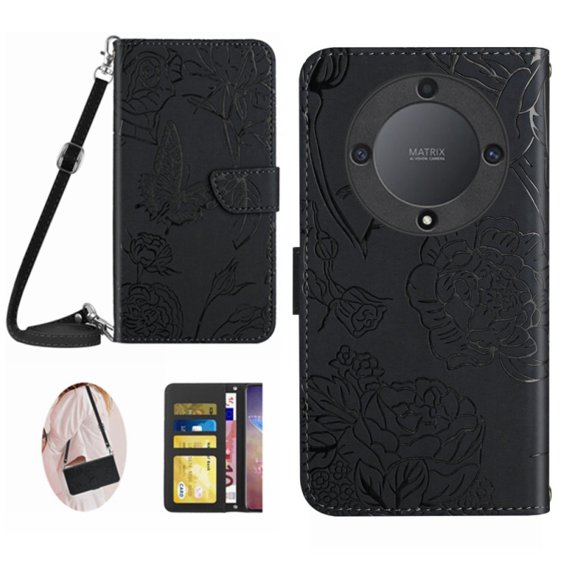A capa Butterflies em pele sintética inclui uma alça de ombro ajustável para transportar o Honor Magic 5 Lite 5G / X9a.