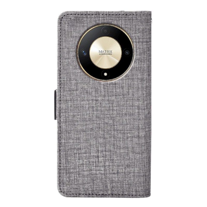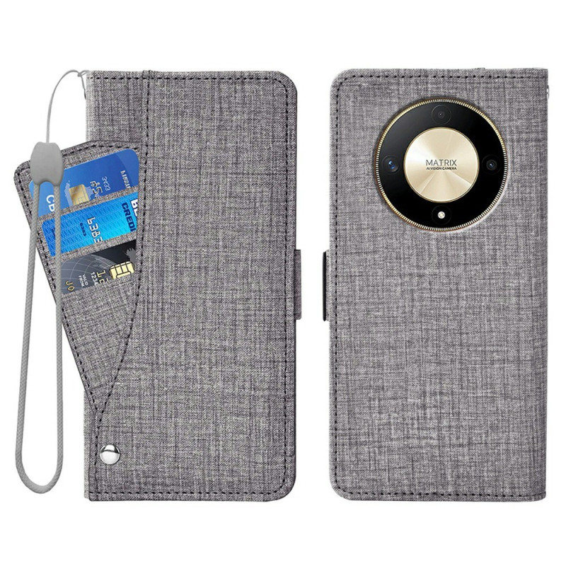 Descubra este elegante capa de carteira com textura de ganga para o seu Honor Magic 6 Lite / X9b. Com 3 ranhuras para cartões, um bolso para dinheiro e um porta-cartões externo rotativo, combina estilo e praticidade.