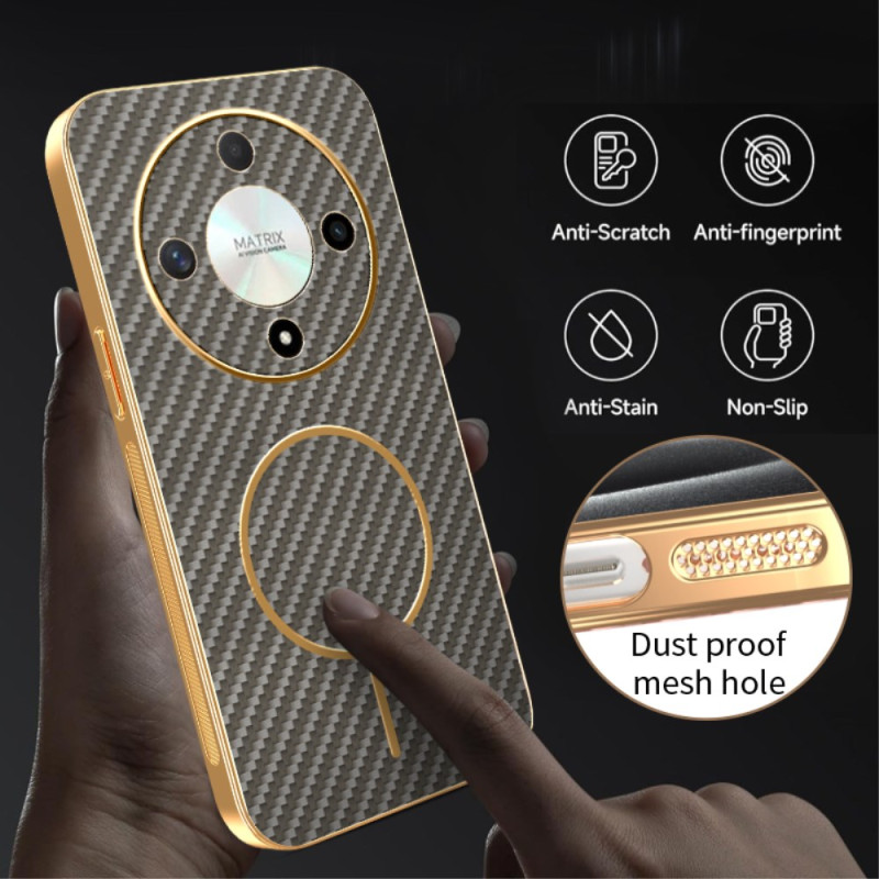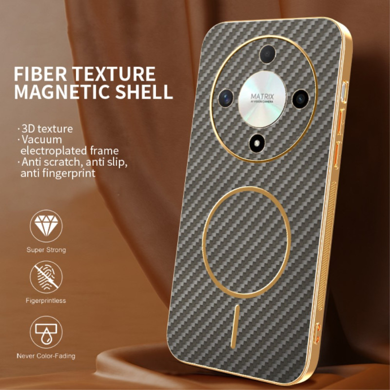 Proteja o seu Honor Magic 6 Lite / X9b com esta elegante capa em TPU com textura de fibra de carbono. Acabamento electrolisado de alta qualidade, resistente às impressões digitais e compatível com carregadores magnéticos para uma proteção óptima.
