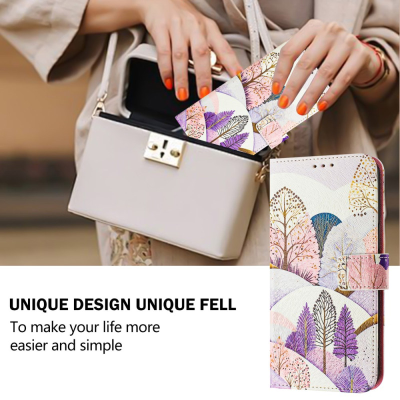 Proteja o seu smartphone com estilo com esta elegante capa de carteira com um motivo de árvore. Com um suporte multi-ângulo ajustável, 3 ranhuras para cartões e uma correia de pulso segura, combina praticidade com uma proteção óptima para o uso diário.