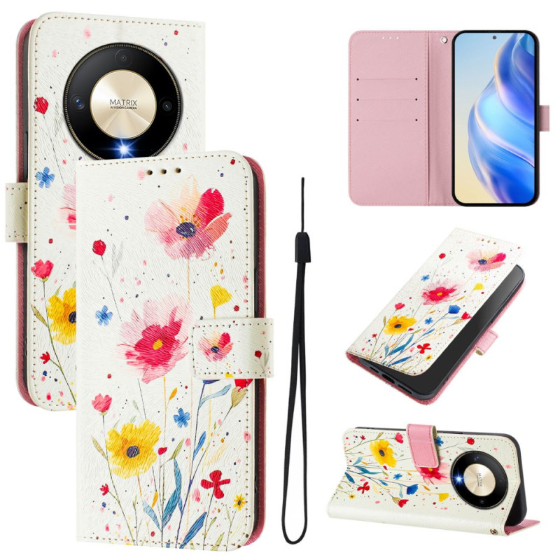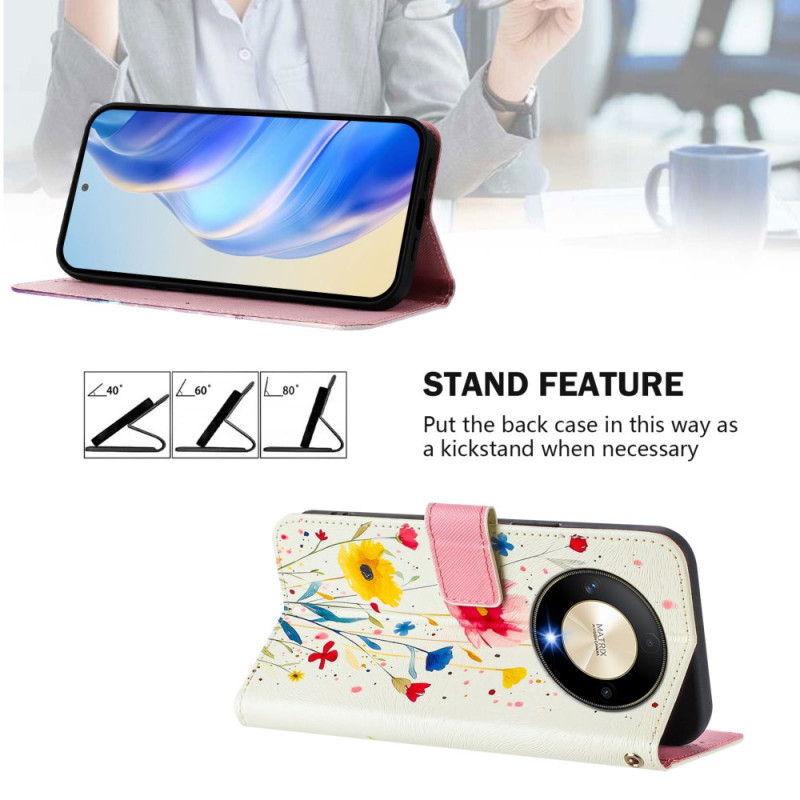 Proteja o seu Honor Magic 6 Lite / X9b com estilo com esta elegante capa de carteira com motivos florais. Com um suporte multi-ângulo ajustável, 3 ranhuras para cartões e uma correia de pulso segura, combina funcionalidade com bom aspeto.