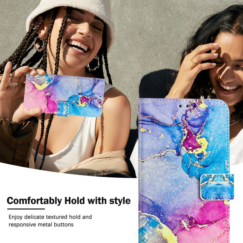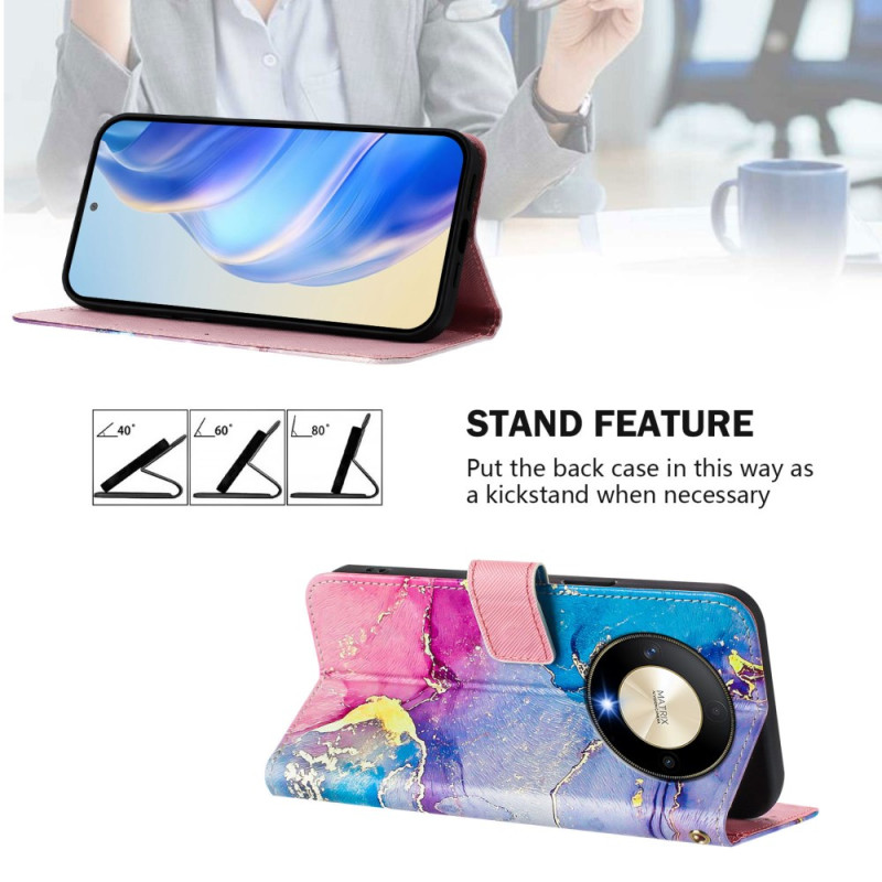 Proteja o seu Honor Magic 6 Lite / X9b com estilo com esta elegante capa para carteira com um padrão de mármore multicolorido. Com um suporte multi-ângulo ajustável, 3 ranhuras para cartões e uma correia de pulso segura, combina funcionalidade e proteção.