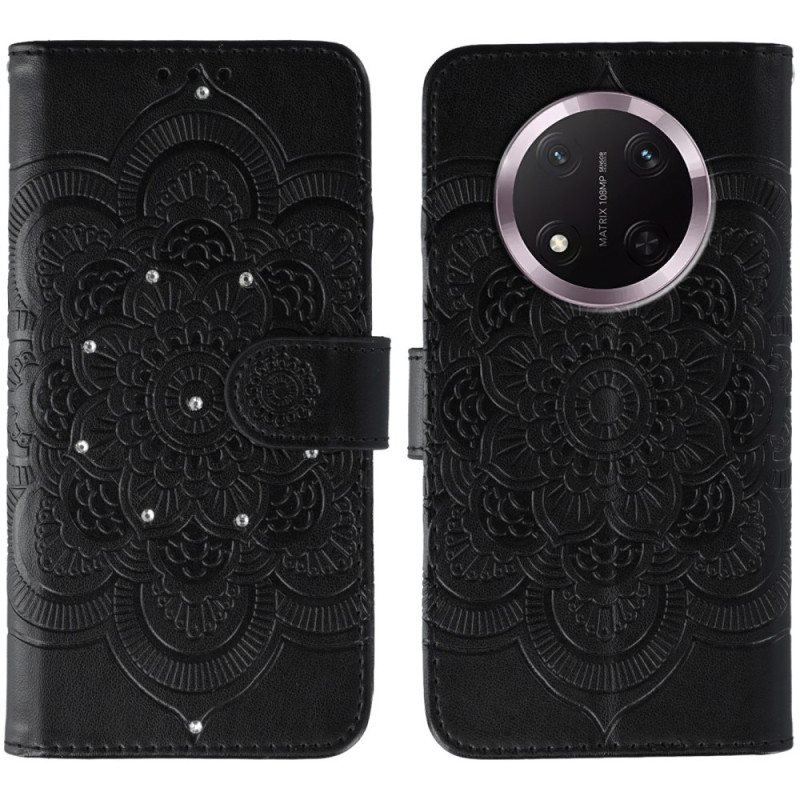 Proteja o seu Honor Magic 7 Lite / X9c com estilo com este capa sofisticado com um motivo de mandala impresso e strass brilhantes. Com compartimentos para cartões e dinheiro, uma função de suporte e uma prática alça de mão, combina estilo com funcionalidade quotidiana.