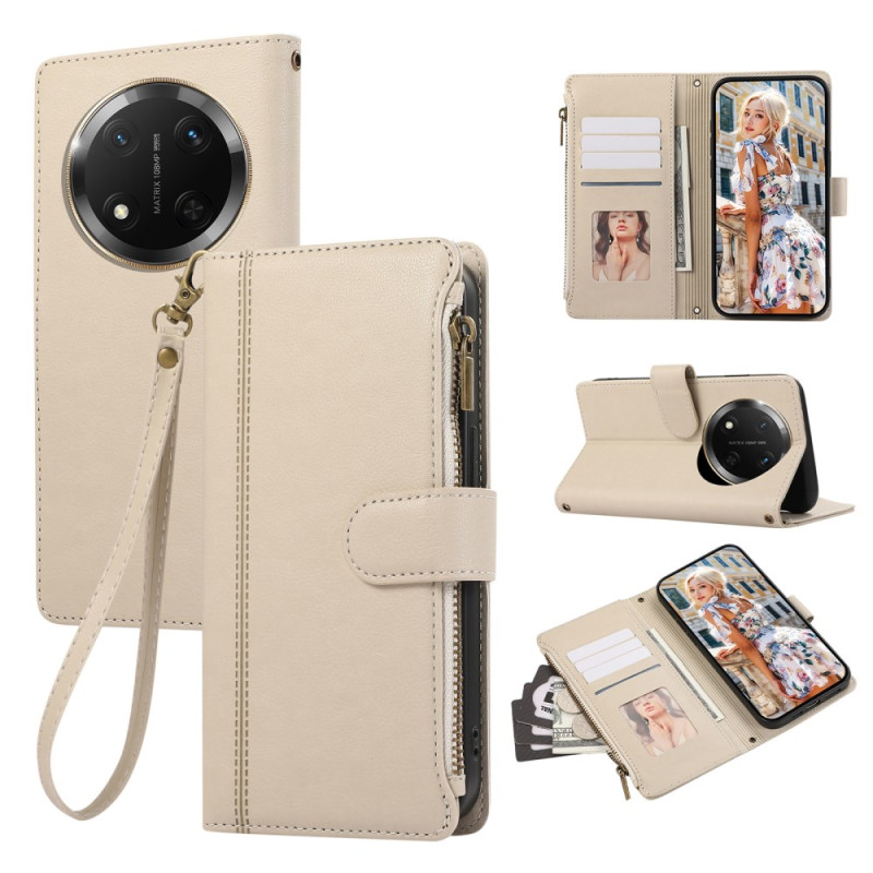 Capa multifuncional em pele PU com fecho de correr e várias ranhuras para cartões. Combina uma óptima proteção e praticidade no dia a dia com uma alça de mão destacável e um suporte integrado para uma experiência de mãos livres.