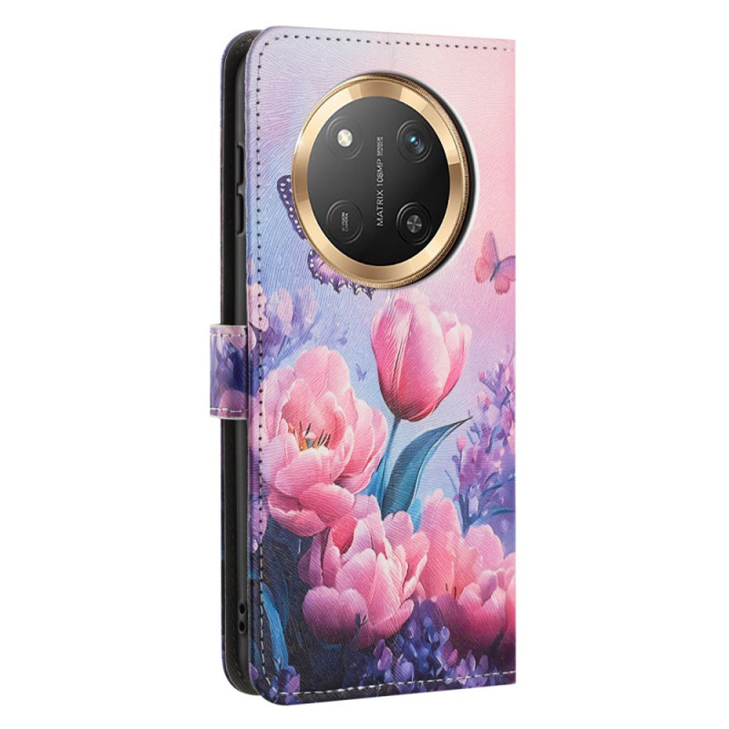 Proteja o seu Honor Magic 7 Lite / X9c com estilo com esta capa de carteira com um motivo floral e borboletas cor-de-rosa. Design prático com suporte para cartões integrado, suporte dobrável e fecho magnético. Inclui um cordão amovível para facilitar o transporte.