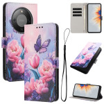 Estojo multifunções elegante com estampado floral e borboleta cor-de-rosa. Inclui ranhuras para cartões, um prático suporte desdobrável, um fecho magnético seguro e uma alça de mão a condizer para um transporte fácil no dia a dia.