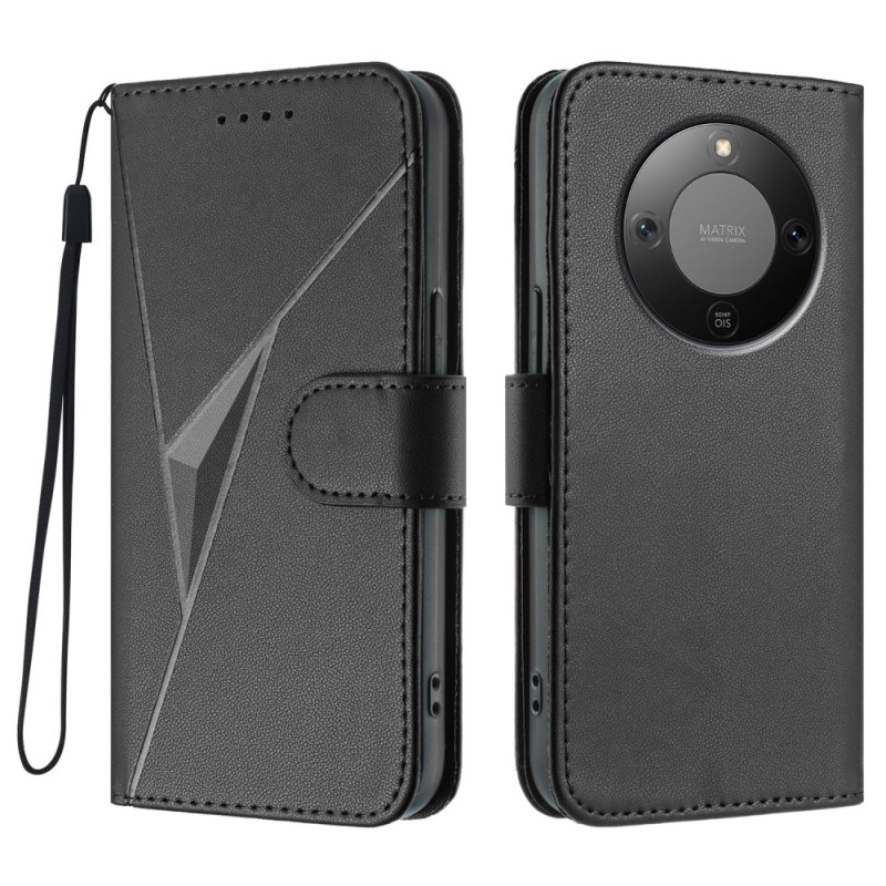Capa elegante para carteira com um sofisticado motivo triangular, fecho magnético seguro e uma prática correia de mão. Fabricada em pele PU de primeira qualidade e TPU macio para uma proteção óptima. Armazena até três cartões e dinheiro.