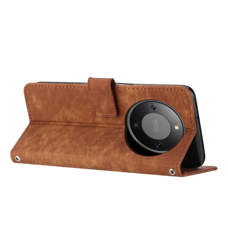 Descubra esta elegante capa para carteira em pele PU texturada para o seu Honor Magic 8 Lite. Com as suas 3 ranhuras para cartões, função de suporte e fecho magnético seguro, proteja o seu telemóvel com estilo.