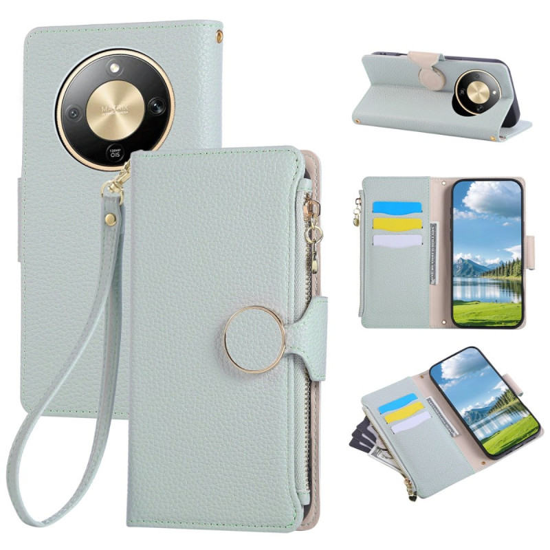 Proteja o seu Honor Magic 8 Lite 5G com estilo com esta capa multifunções em pele PU de primeira qualidade. Com um fecho de correr, 3 compartimentos para cartões, um bolso lateral e uma correia de pulso amovível, combina proteção e praticidade para uma utilização diária.