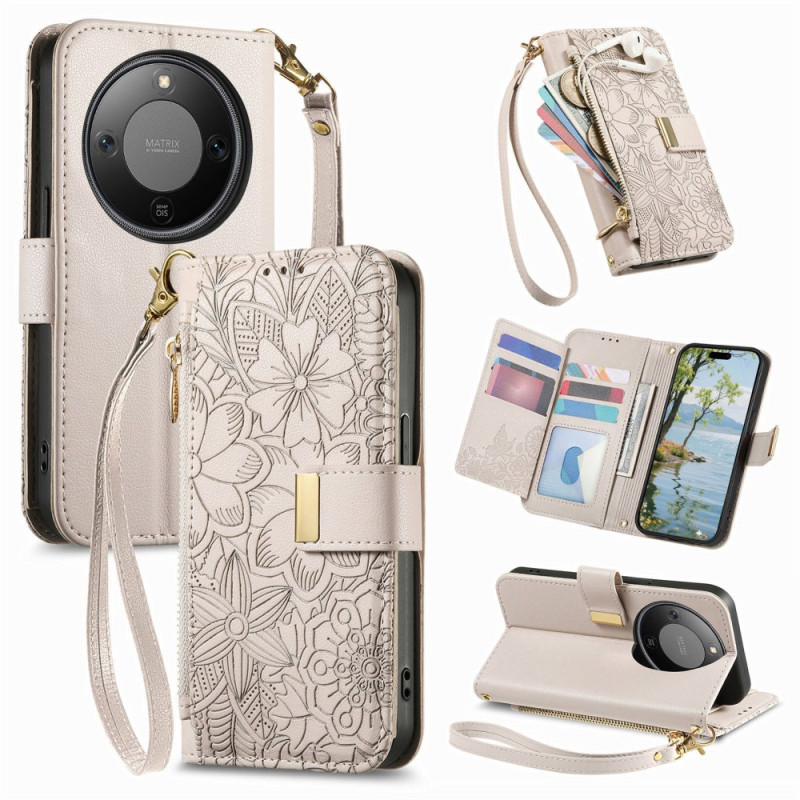 Descubra esta elegante capa de carteira multifunções para o seu smartphone Honor Magic 8 Lite. Com um bonito motivo floral e vegetal, combina estilo e praticidade com as suas múltiplas ranhuras para cartões, bolso seguro com fecho de correr e alça de pulso amovível.