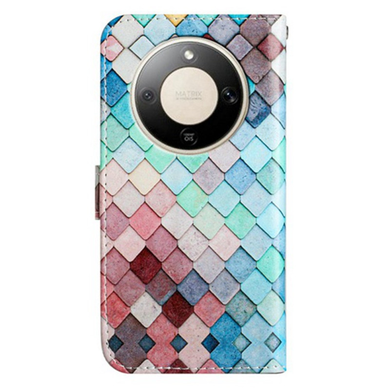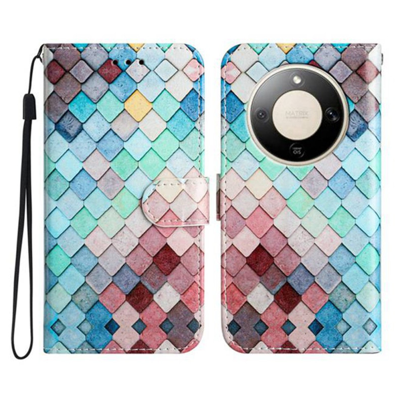 Capa de carteira elegante com padrão de grelha impressa, que oferece proteção completa para o Honor Magic 8 Lite 5G. Inclui 3 ranhuras para cartões, suporte multi-ângulo ajustável e fecho magnético seguro.