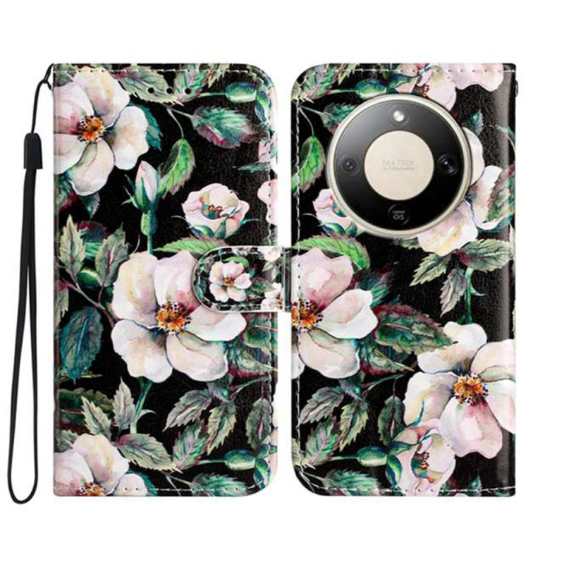 Proteja o seu Honor com estilo com este capa multifunções com um requintado motivo de magnólia. Com 3 ranhuras para cartões, um fecho magnético seguro e uma alça de mão amovível, combina estilo e praticidade.