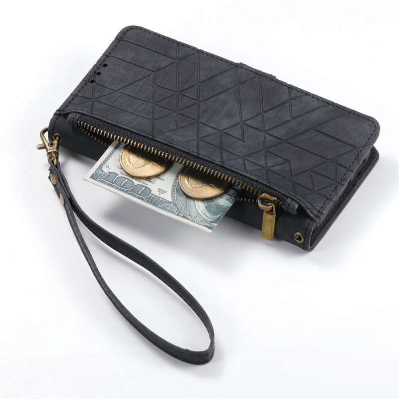 Capa multifunções em pele PU de primeira qualidade com fecho de correr para o Honor Magic 8 Pro 5G. Design geométrico elegante, 3 ranhuras para cartões, bolso seguro com fecho de correr e função de suporte integrada.